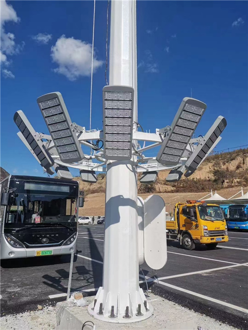 高杆燈由燈頭、內部燈具電氣、杆體及基礎部分組成。燈頭造型生產高杆燈廠家可根據用戶要求、周圍環境、照明需要具體而定;內部燈具多由泛光燈和投光燈組成,光源采用NG400高壓鈉燈,照明半徑達60米。杆體一般為棱錐形獨體結構,用鋼板卷製而成,高度為15—40米,多為兩到三節構成。